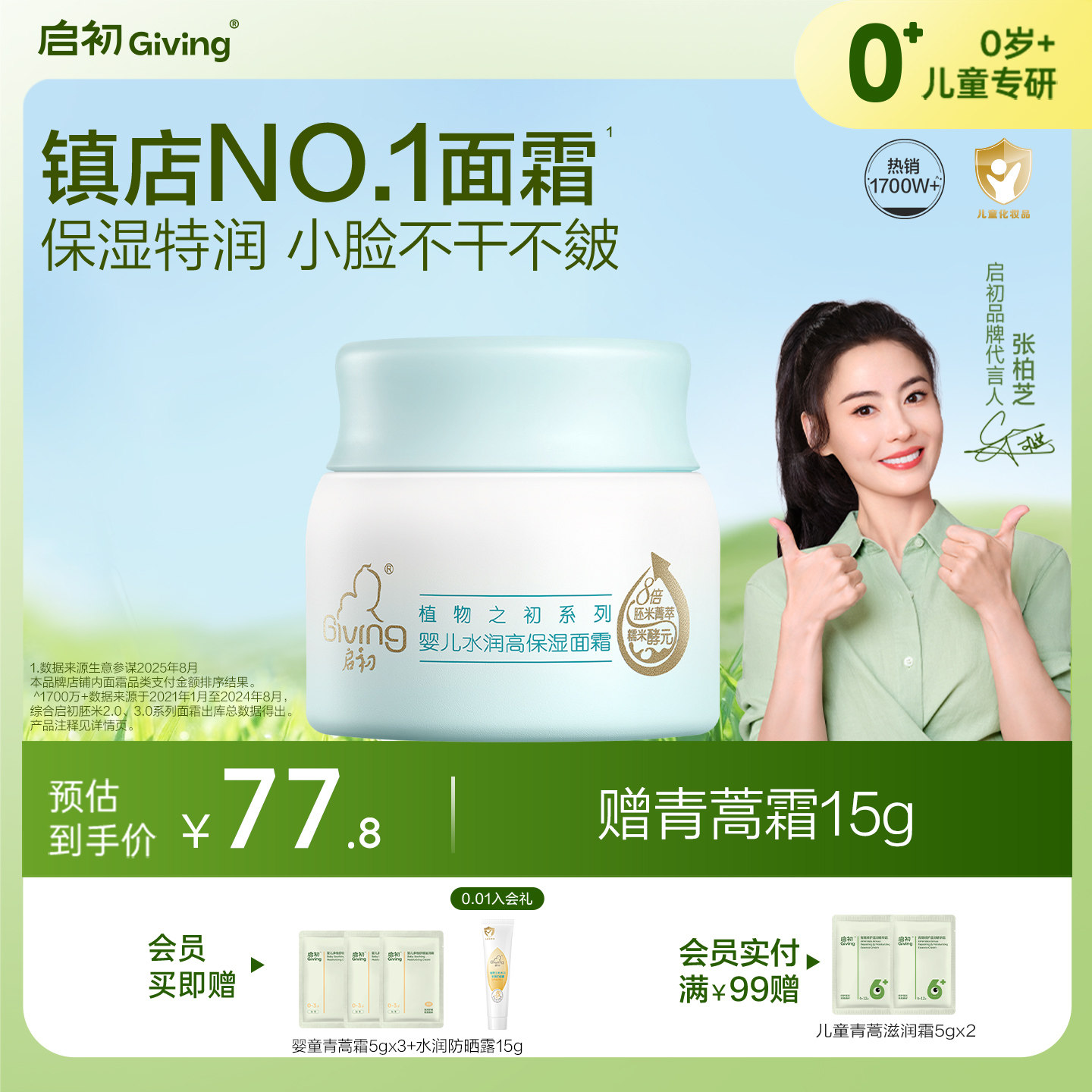 启初儿童面霜胚米3.0婴儿无激素高保湿特润舒缓面霜80g宝宝霜补水