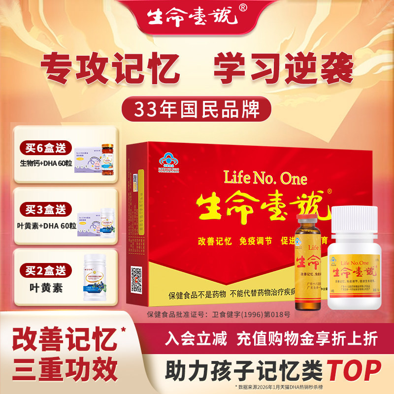 生命一号补脑口服液送DHA增强初高中学生改善记忆力儿童青少年