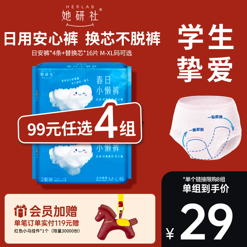 【99任选4组】她研社日用春日小懒裤经期一次性可换卫生巾安睡裤