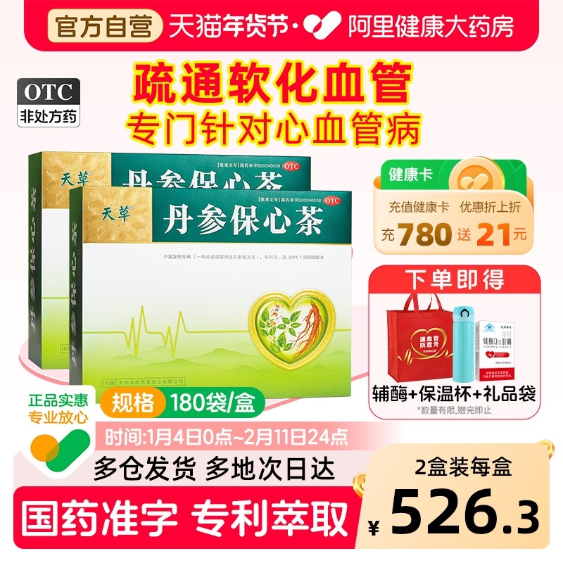 天草丹参保心茶180袋胸闷心痛心悸气短丹参护心茶丹心茶专用药
