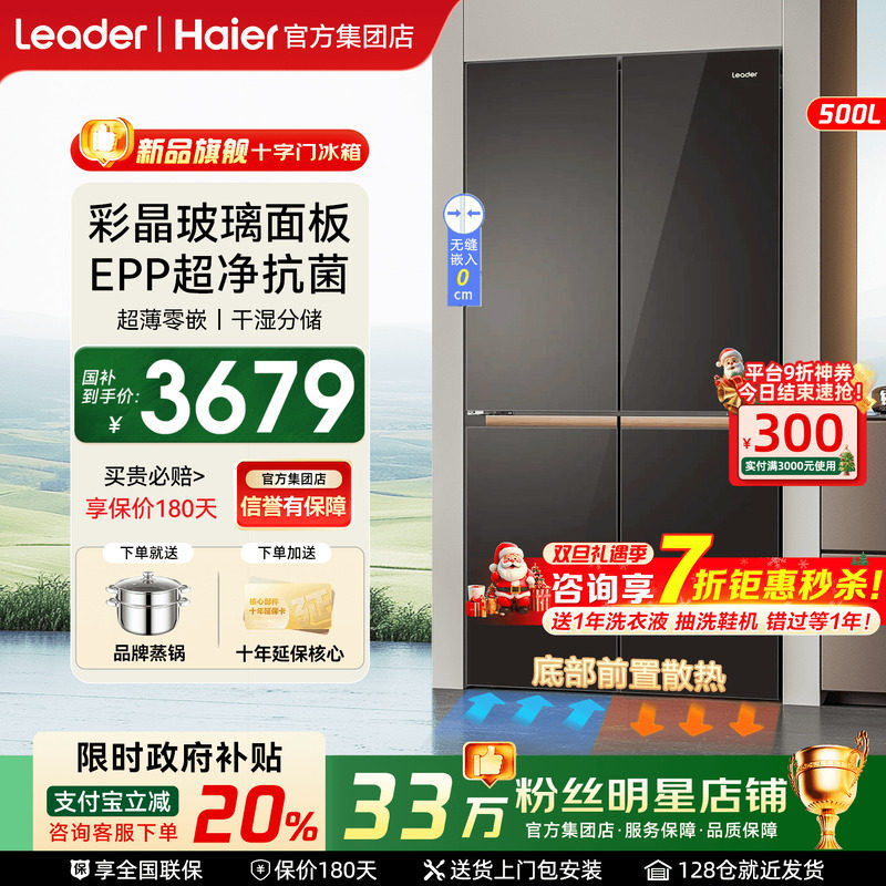 【补贴20%】海尔冰箱500L家用十字四门多门统帅529超薄零嵌旗舰店