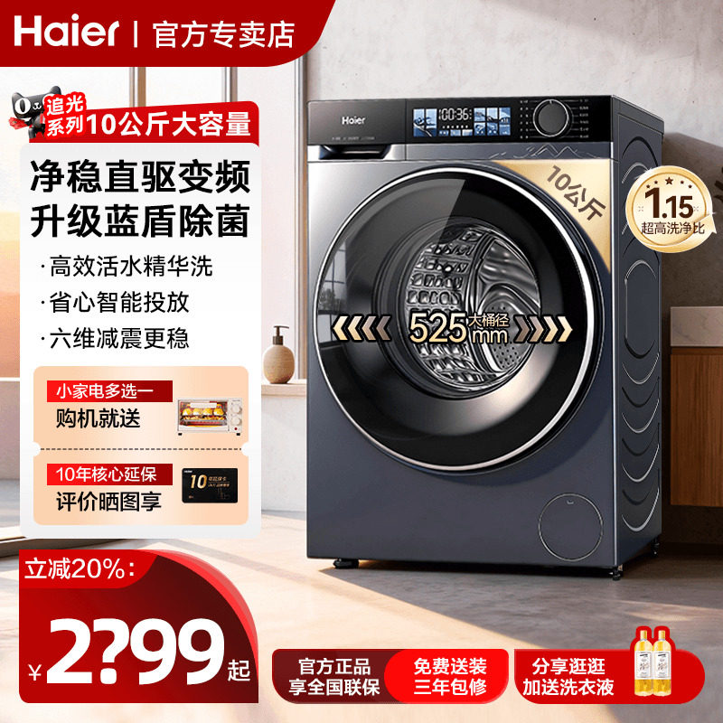 【云溪4.0】海尔直驱精华洗37E滚筒洗衣机10KG全自动家用洗烘一体