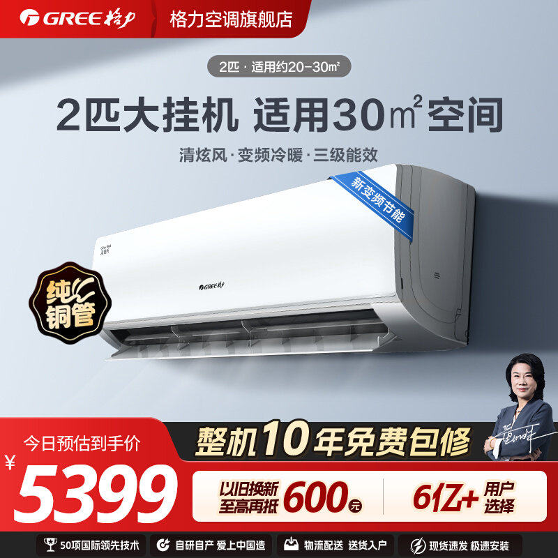 【Gree/格力官方】2匹变频家用空调大挂机客厅冷暖两用智能清炫风
