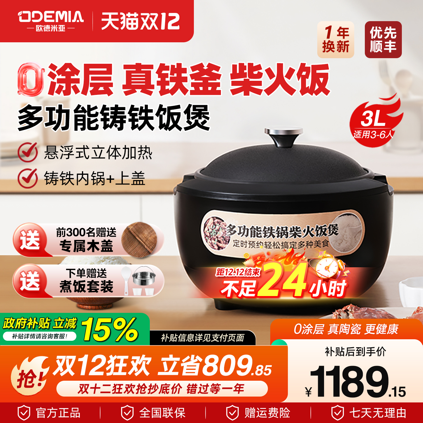 • 泡美丽»»欧德米亚铸铁锅电饭煲迷你家用2-4人5-6无涂层智能预约柴火饭锅3L