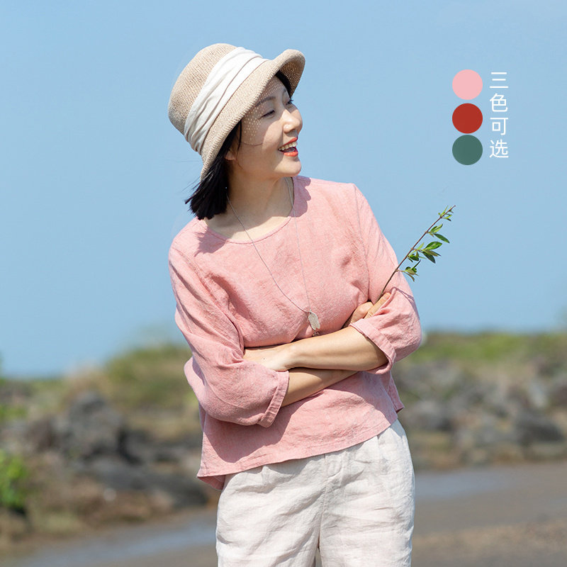 忘城H365座/相约春天/2023早春新款色织亚麻圆领廓形简约多色T恤