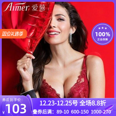 爱慕本命年内衣 专柜正品 3/4中厚杯侧收聚拢深V红色文胸AM11HC1