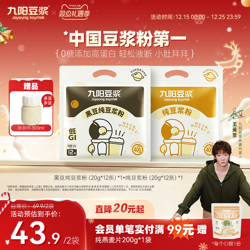 【0糖添加】九阳豆浆黑豆高蛋白原味纯豆浆粉无添加健身早餐孕妇