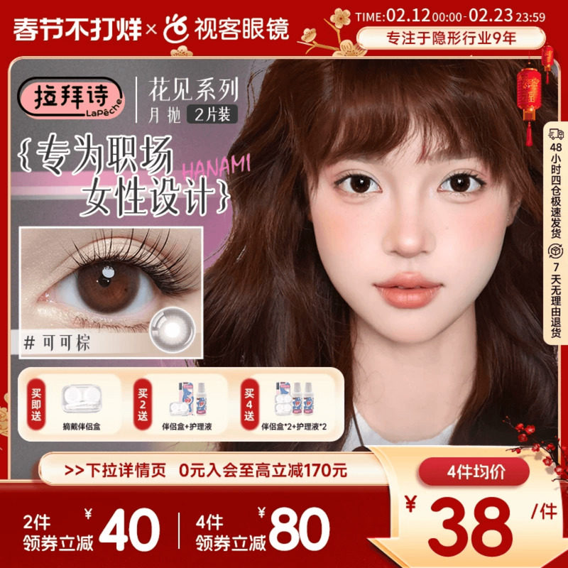 LaPeche拉拜诗花见月抛美瞳女1片*2盒职场日常小直径彩色隐形眼镜