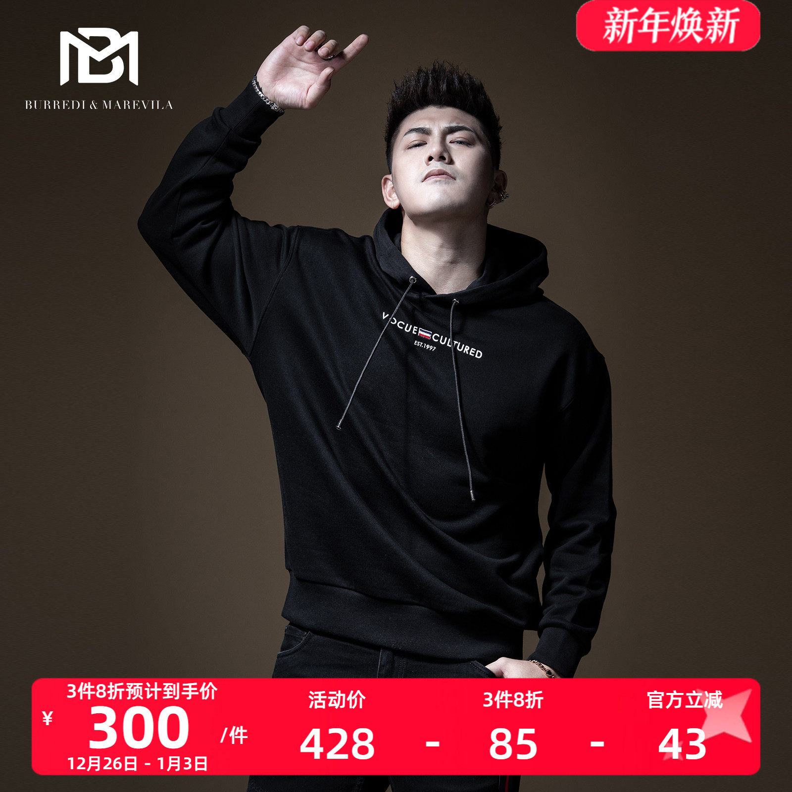 BM男士字母刺绣嘻哈卫衣男连帽ins潮牌港风潮流韩版百搭纯色外套