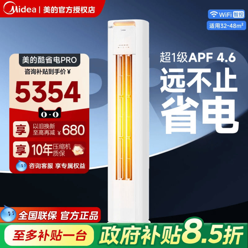 【政府补贴】美的空调酷省电3匹2匹柜机立式一级能效变频冷暖家用