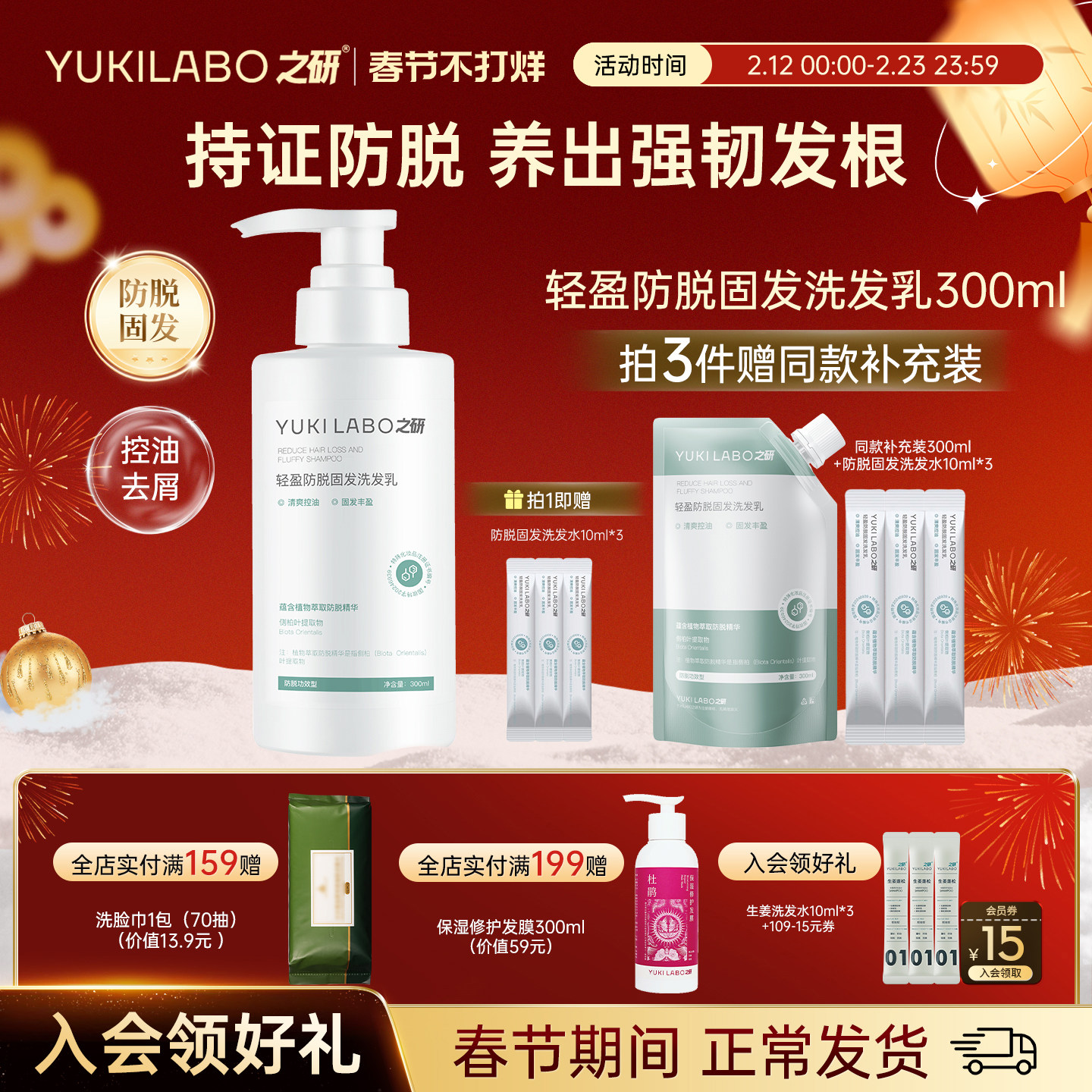 【防脱款】之研轻盈防脱固发洗发乳强韧发丝防断发控油去屑洗发水