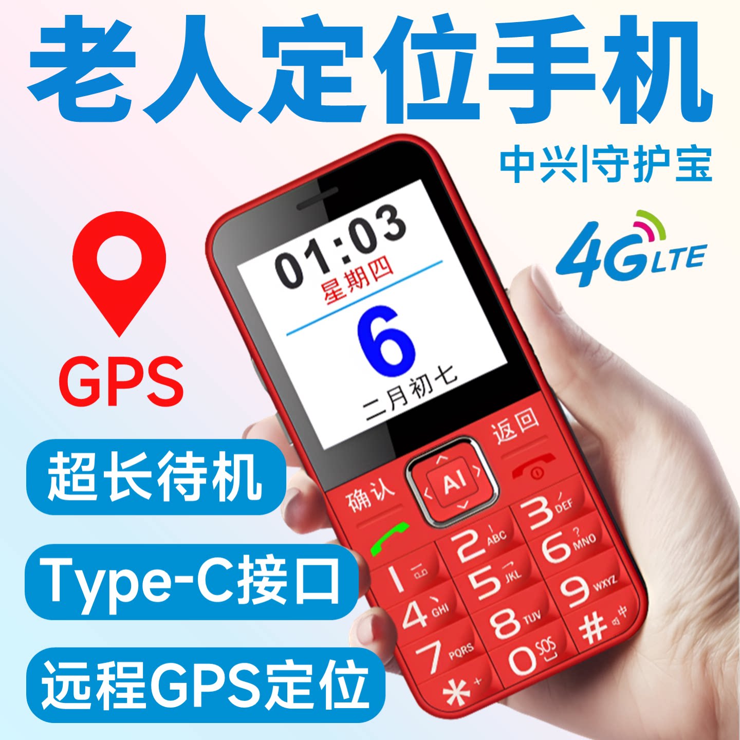 【远程定位】中兴守护宝K580s老人机老年机手机带定位GPS防走丢失神器痴呆专用