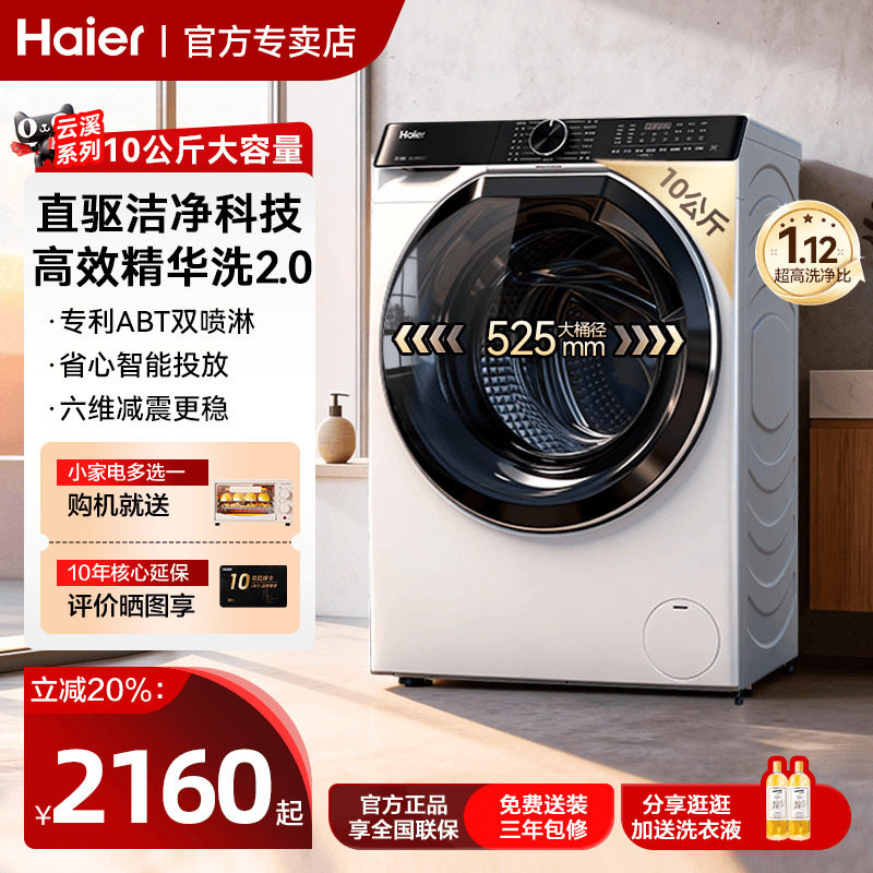 【云溪3.0】海尔579滚筒洗衣机直驱精华洗10公斤家用超薄77E旗舰