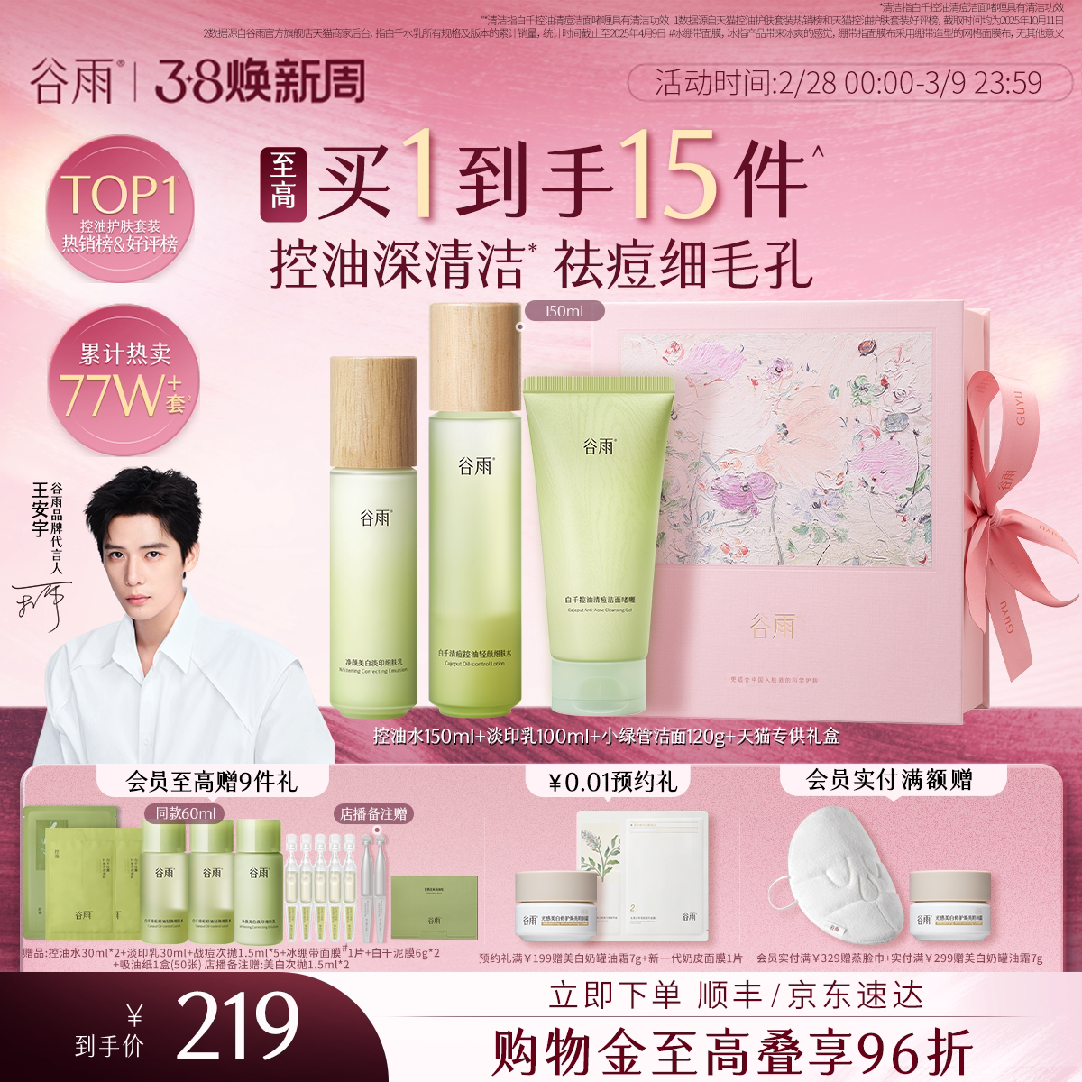 【妇女节礼物】谷雨白千控油水乳套装祛痘淡化痘印松露油皮护肤品