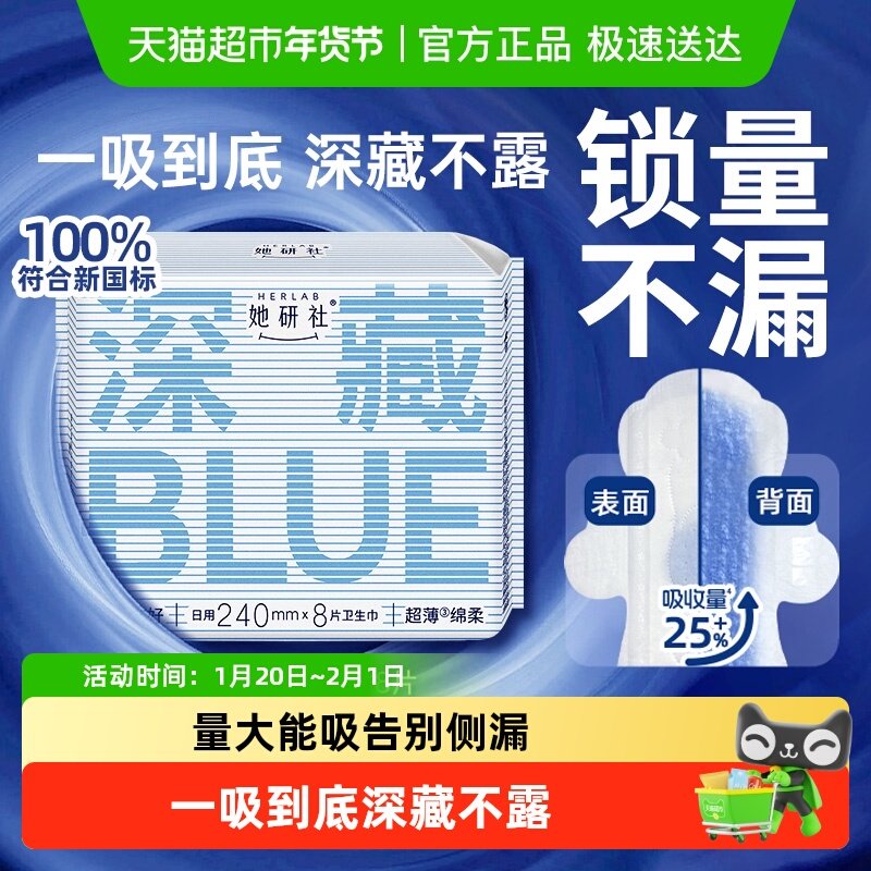 她研社卫生巾深藏BLUE姨妈巾量大日用超薄干爽防漏