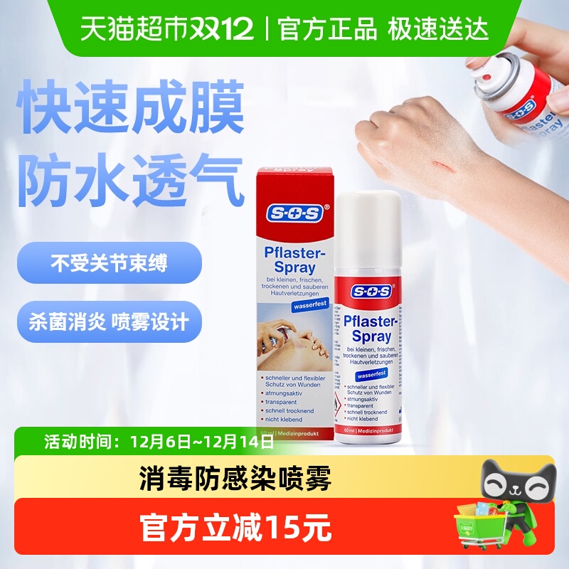 SOS德国液体防水透气创伤口贴愈合凝胶消毒防感染抑菌创可贴喷雾