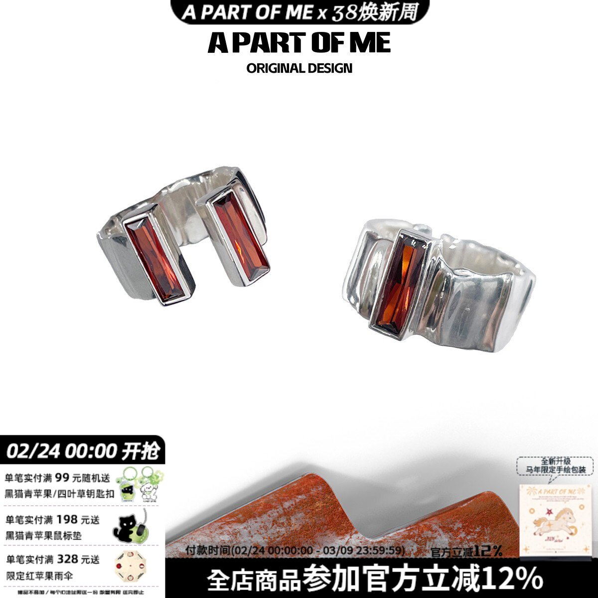 危险同谋/原创925纯银红色锆石开口戒指小众暗黑男女情侣对戒
