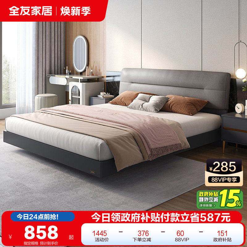 全友家居现代简约软包板式床1米8主卧床收纳储物床轻奢双人大床