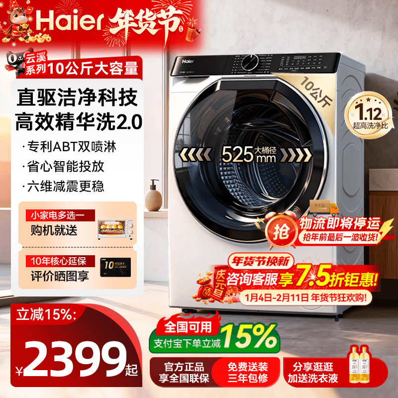 【云溪3.0】海尔579滚筒洗衣机直驱精华洗10公斤家用超薄77E旗舰