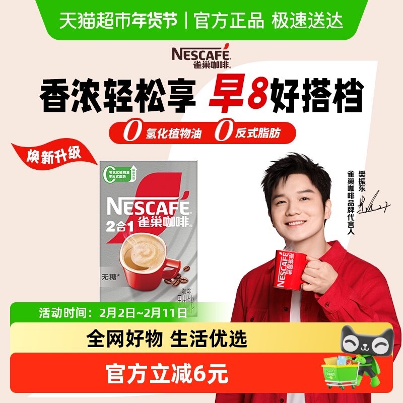 【樊振东同款】雀巢咖啡速溶1+2三合一无蔗糖添加即溶办公咖啡饮