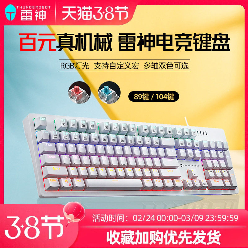 雷神K104游戏机械键盘电竞游戏笔记本客制化电脑有线红青轴kg3104