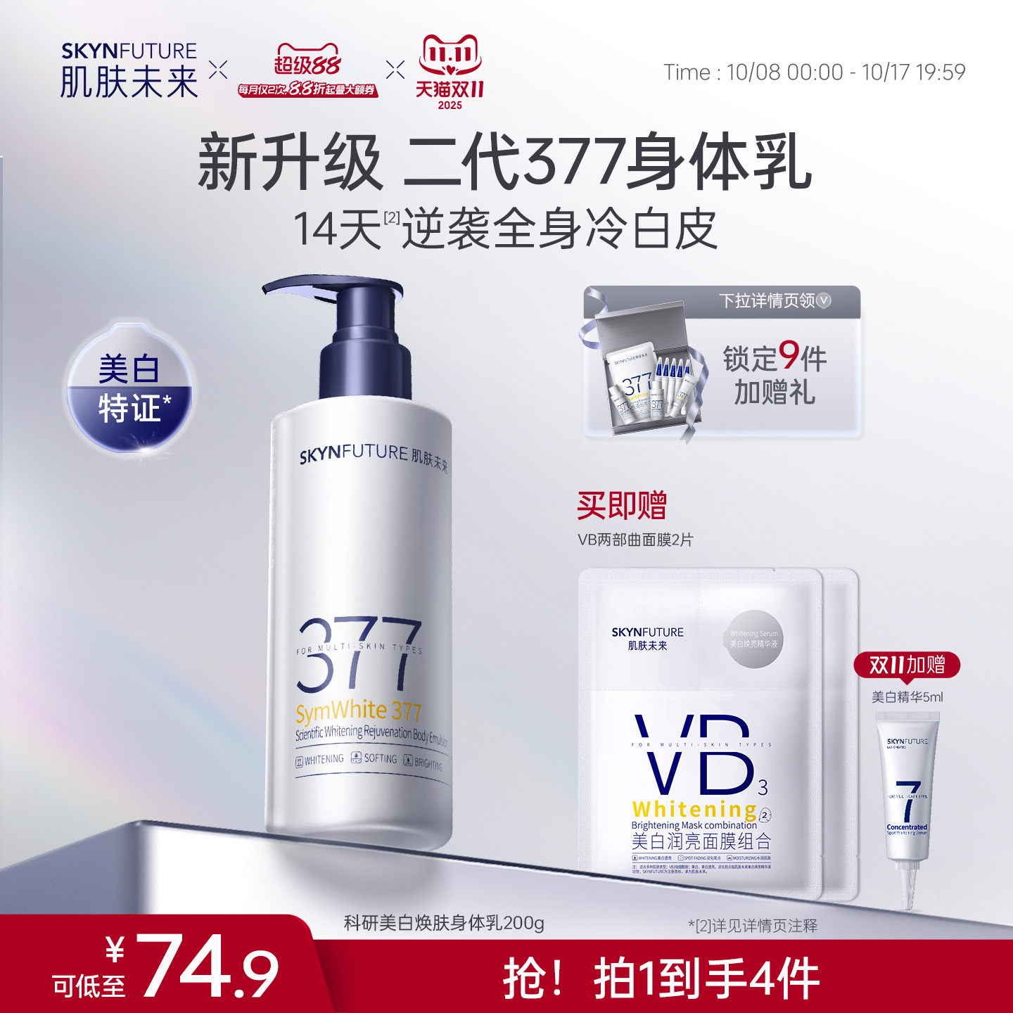 【重磅升级】肌肤未来377美白身体乳滋润补水保湿含护肤甘油润肤
