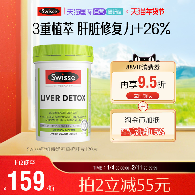 【自营】Swisse斯维诗升级款奶蓟草胆碱护肝片成人加班解酒护肝