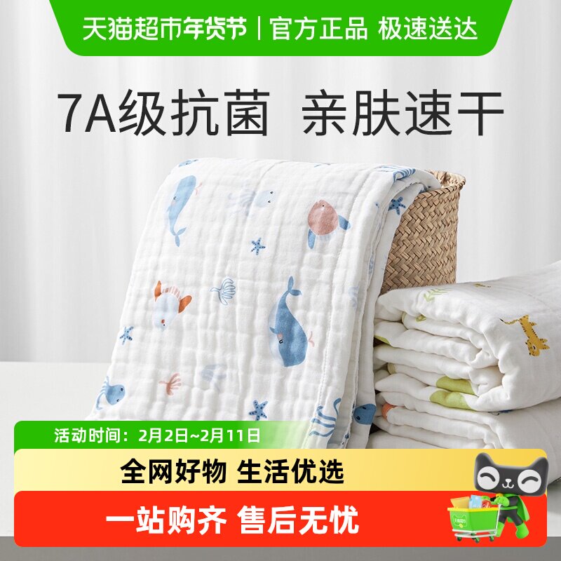 十月结晶婴儿浴巾纯棉纱布初生新生儿全棉超软吸水宝宝儿童大毛巾
