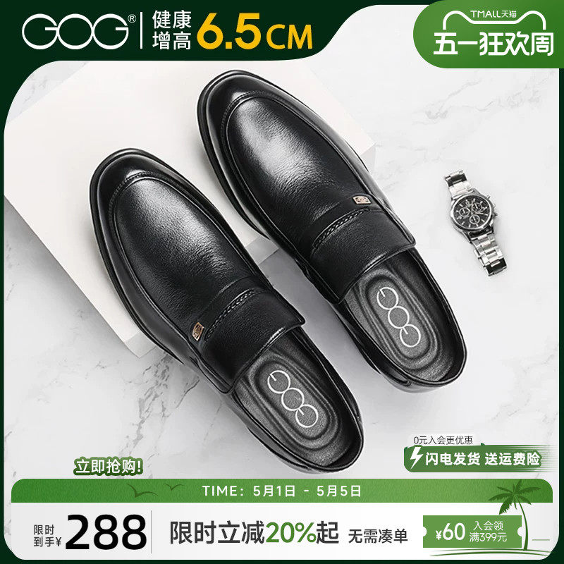 高哥增高皮鞋男春季新款一脚蹬真皮男鞋正装商务隐形内增高鞋子
