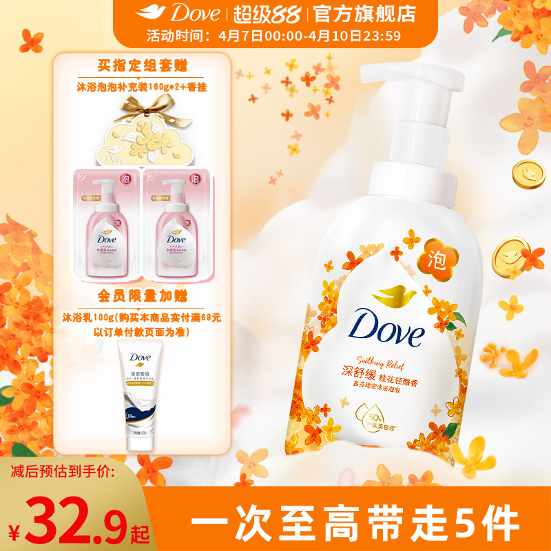 多芬桂花云朵泡泡沐浴露绵密奶泡沫慕斯温和滋润400g官方正品