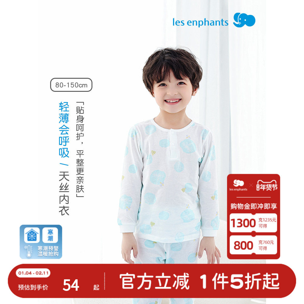 丽婴房儿童秋季上衣天丝内衣套装男女童空调家居服宝宝长袖睡衣秋