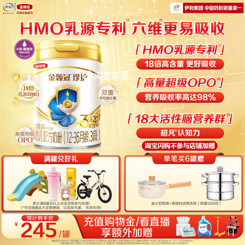 【HMO乳源专利】新鲜-金领冠珍护3段12-36个月婴幼儿奶粉900g*1罐