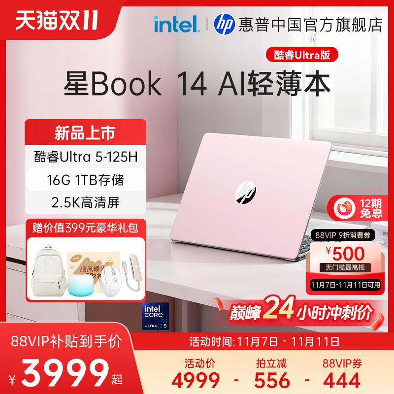 • 泡美丽»»HP/惠普可选星Book14英特尔酷睿ultra5/7笔记本电脑轻薄便携学生AI