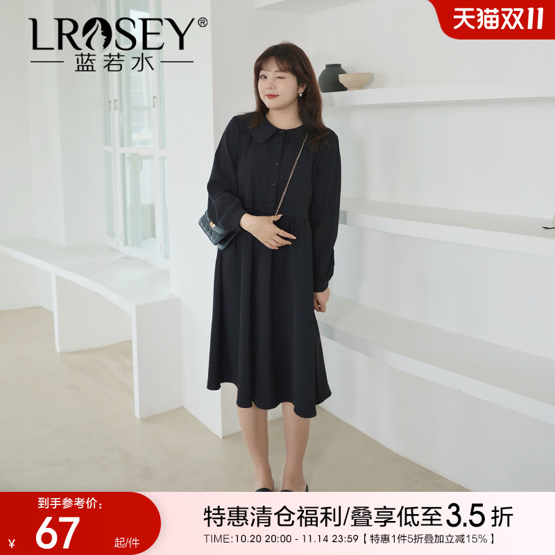 蓝若水大码女装赫本风翻领气质小黑裙胖mm秋季新款显瘦打底连衣裙