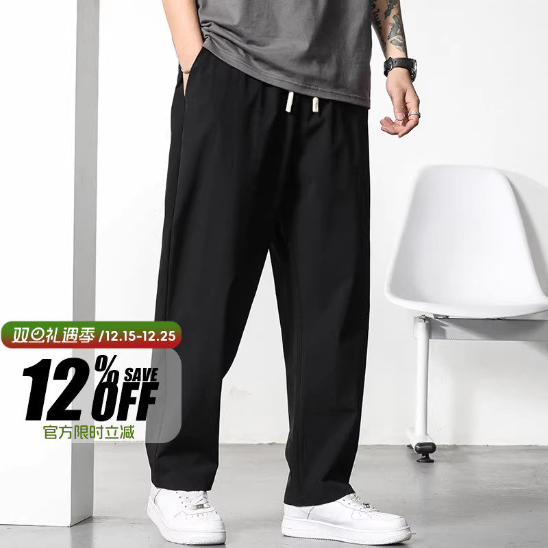GxxH潮牌大码男装 个性加肥加大夏季百搭黑色宽松直筒冰丝九分裤