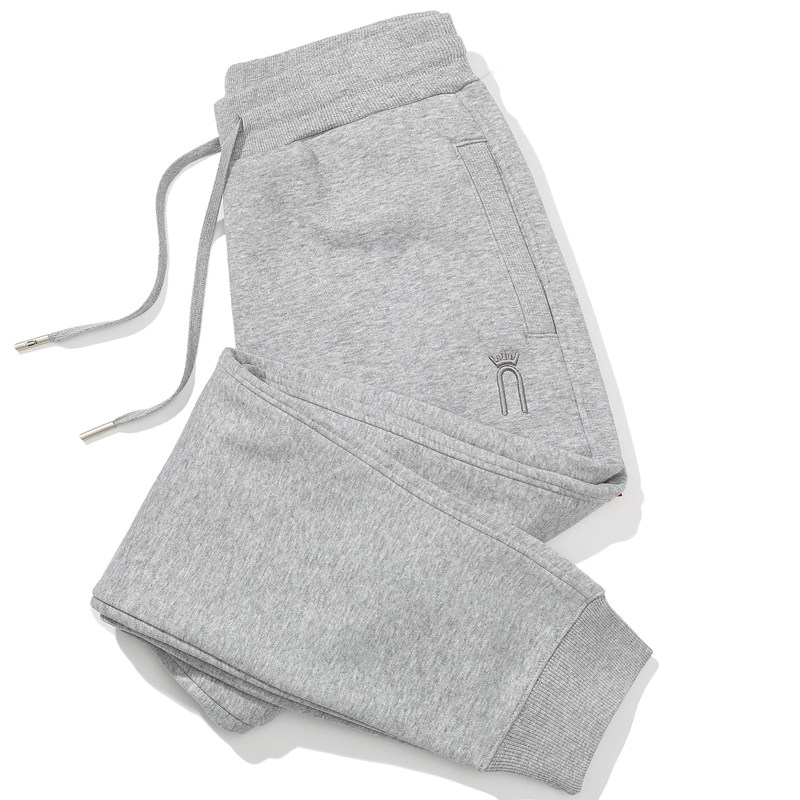 春秋冬季新款高端灰色运动裤女宽松束脚加绒休闲纯色刺绣卫裤