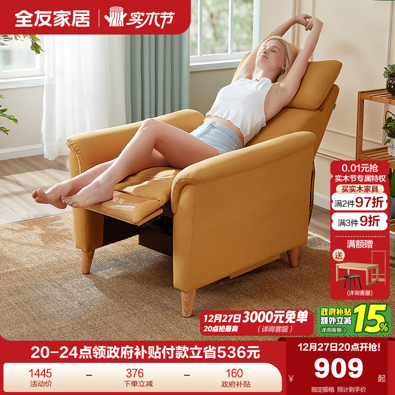 全友家居现代简约客厅单人布艺沙发阳台卧室多功能小沙发休闲躺椅