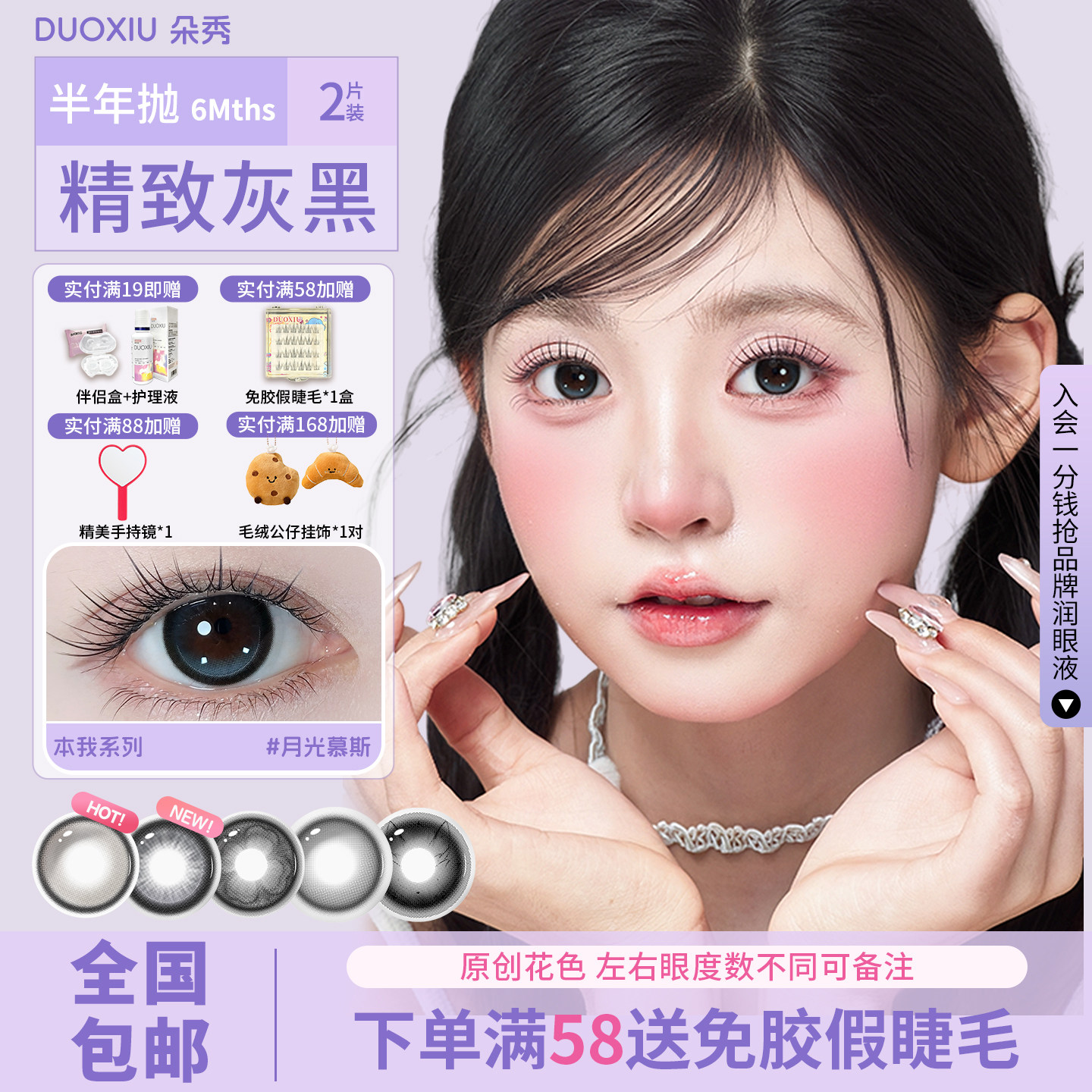 DUOXIU朵秀美瞳半年抛大小直径14.2灰黑色日常自然通勤隐形眼镜男