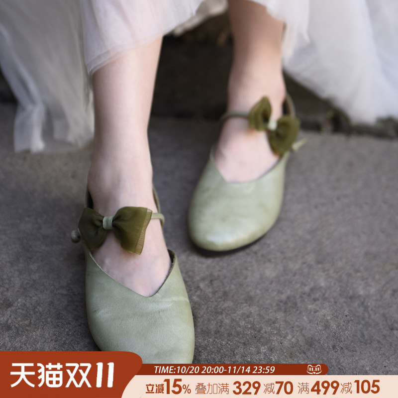 Artmu阿木原创蝴蝶结单鞋浅口真皮平底豆豆鞋仙女玛丽珍鞋新款