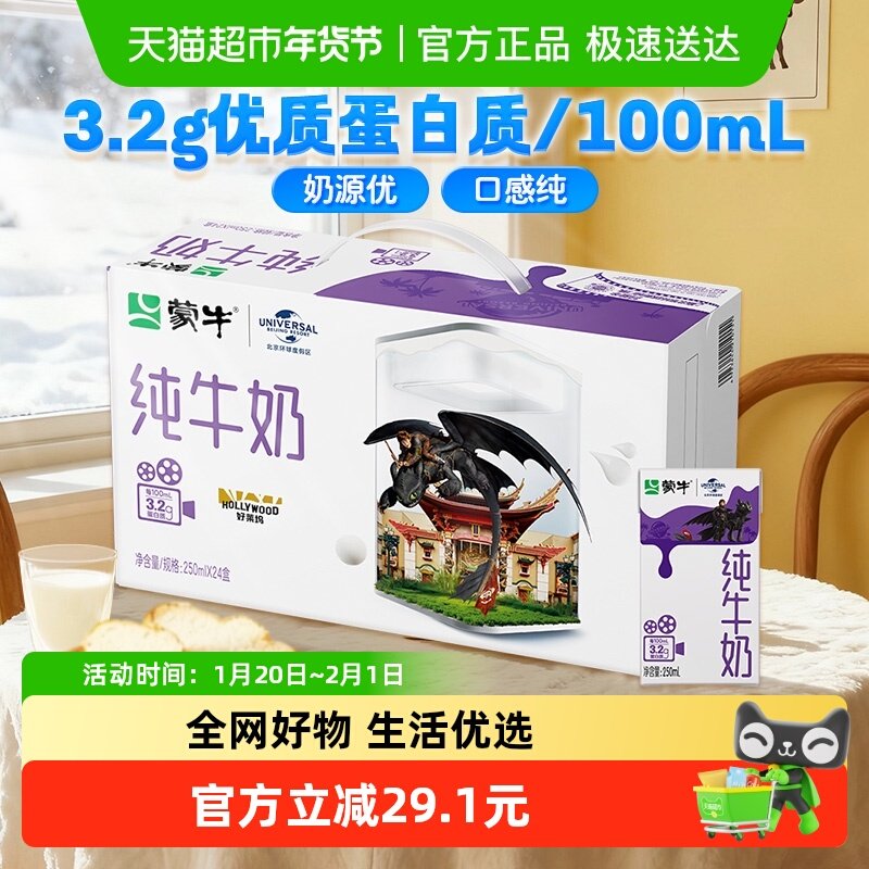 蒙牛全脂营养早餐纯牛奶250ml×24盒优质乳蛋白口感醇厚