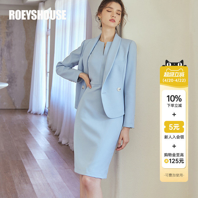 罗衣时尚白领西装套装女春季知性通勤OL风外套连衣裙两件套07233