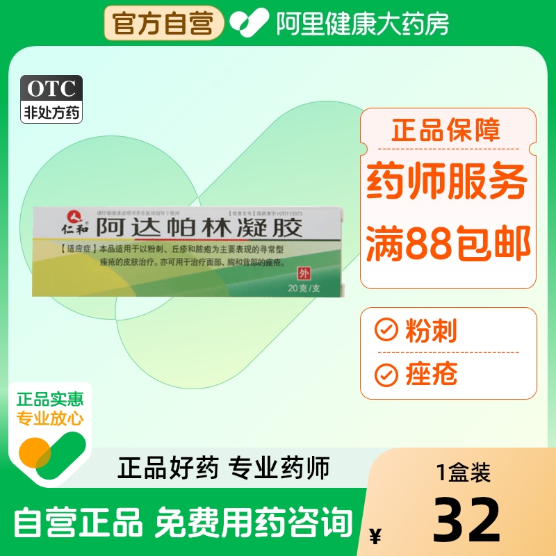 仁和阿达帕林凝胶祛痘医用药膏软膏痘痘黑头闭口20g乳膏11支江苏