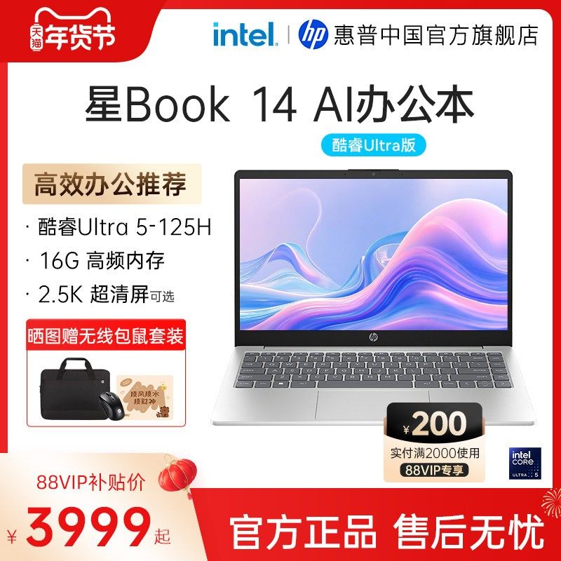 【国家补贴15%】HP/惠普星book14/15 可选英特尔酷睿Ultra5 惠