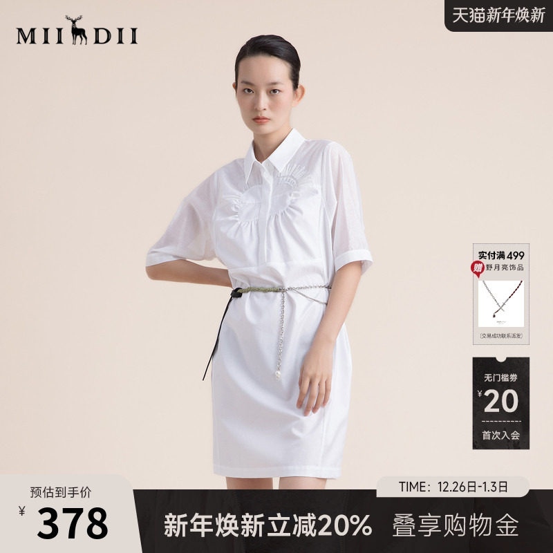 谜底短袖纯棉连衣裙夏款通勤H型显瘦珠片绣花中长裙235ML6050