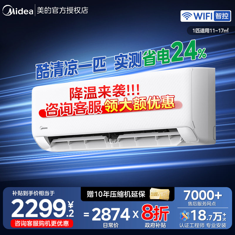 【政府补贴】美的酷清凉空调大1.5匹1匹一级变频卧室挂机式冷暖XA