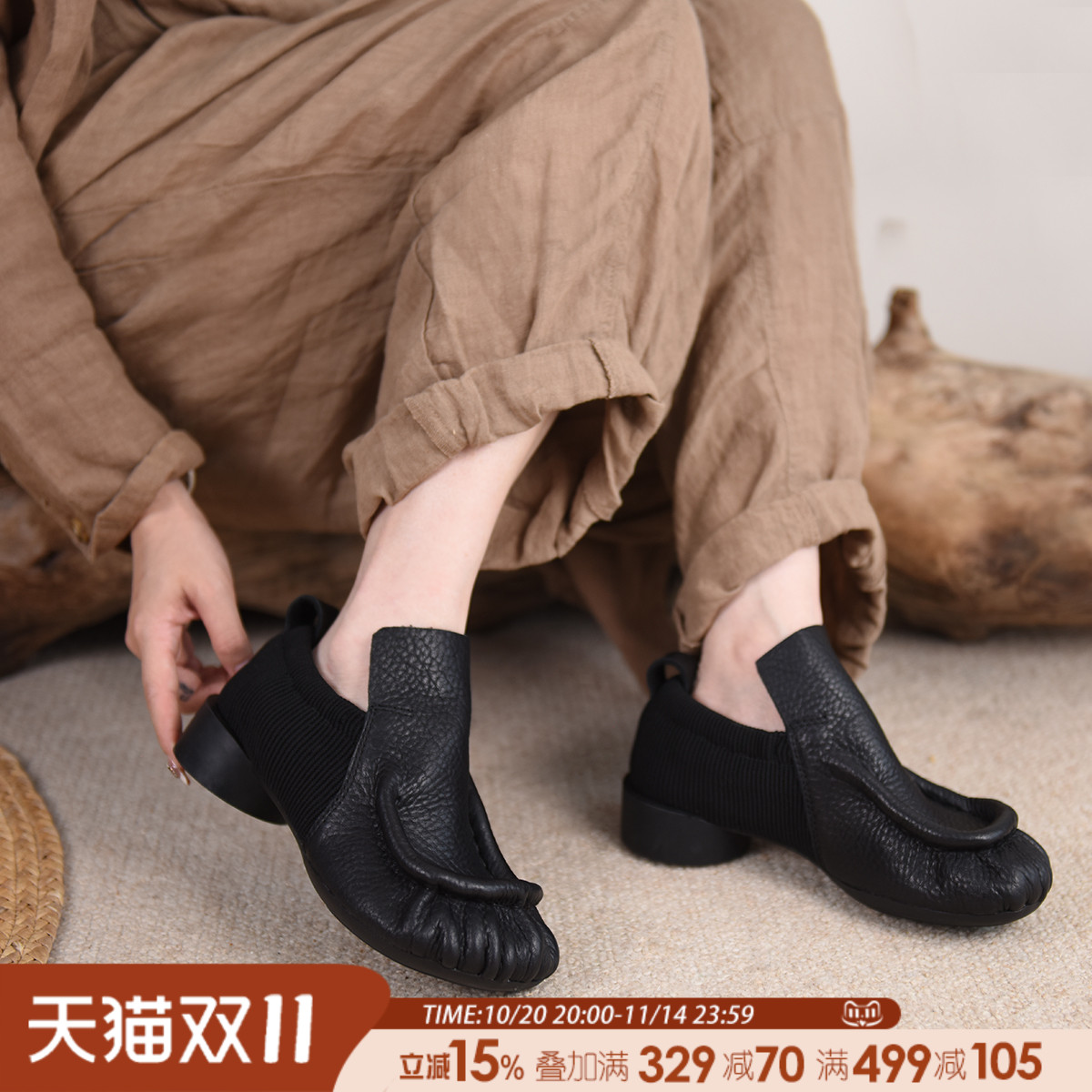 Artmu阿木复古小皮鞋深口单鞋粗跟鞋子女2025春季新款一脚蹬女鞋