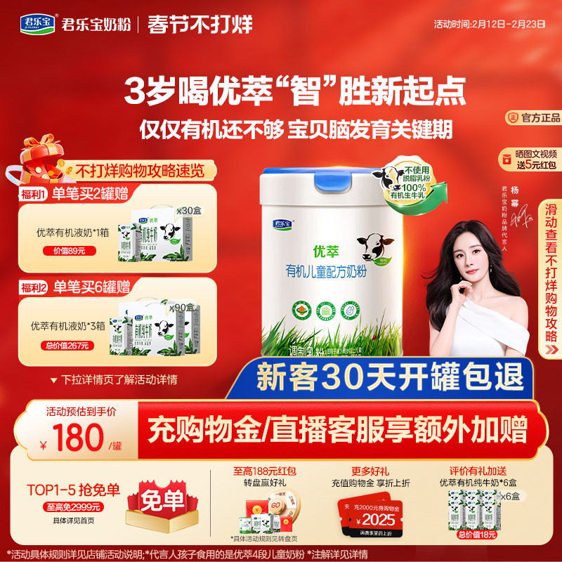 【杨幂推荐】君乐宝优萃有机4段儿童配方牛奶粉3周岁以上800g*1罐