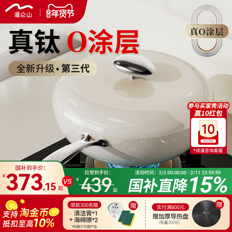 Velosan温仑山钛0涂层炒锅无涂层不粘锅家用燃气陶瓷鹅卵石炒菜锅