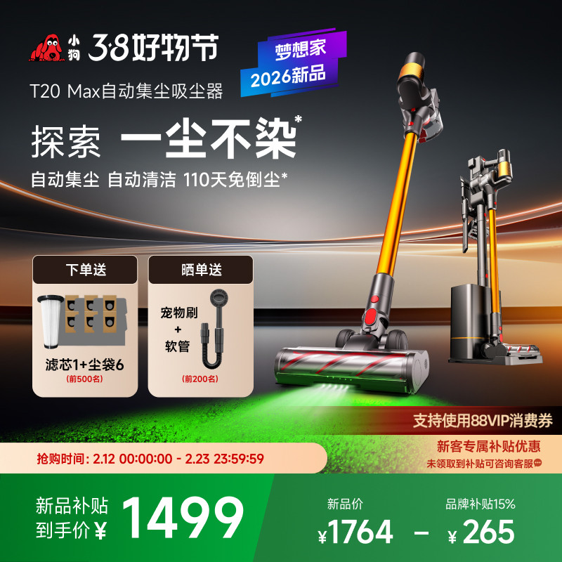 • 泡美丽»»【2026新品】小狗无线吸尘器家用自集尘大吸力除螨吸尘机T20系列