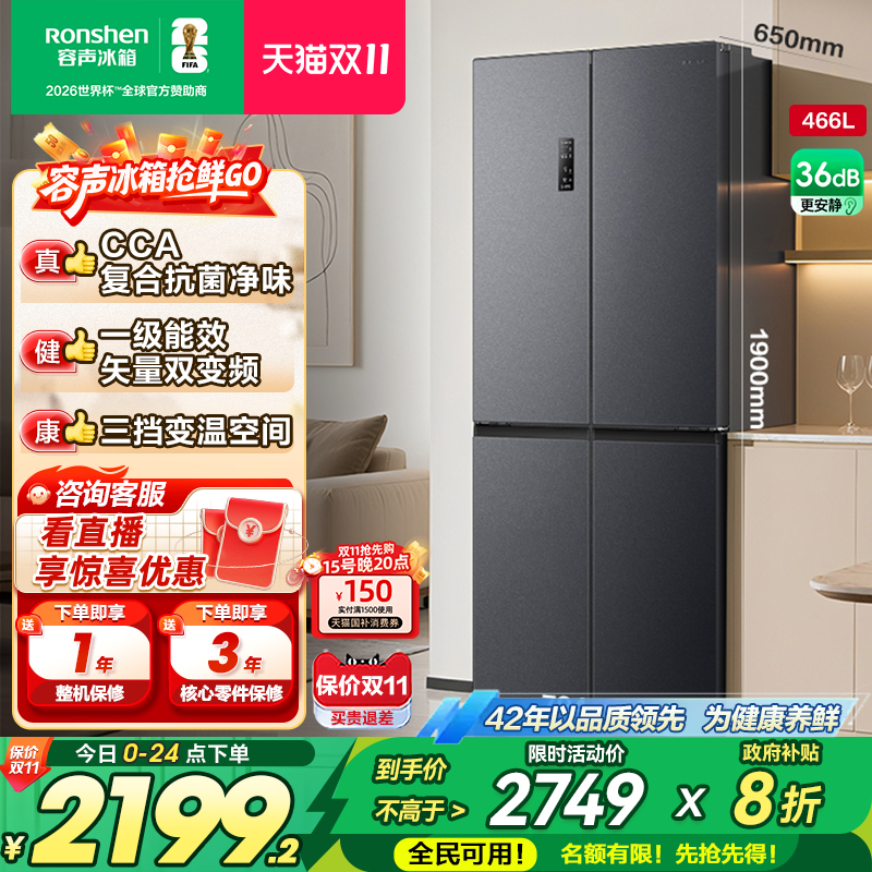 容声466/465十字双开门大容量四门冰箱家用官方一级变频风冷无霜
